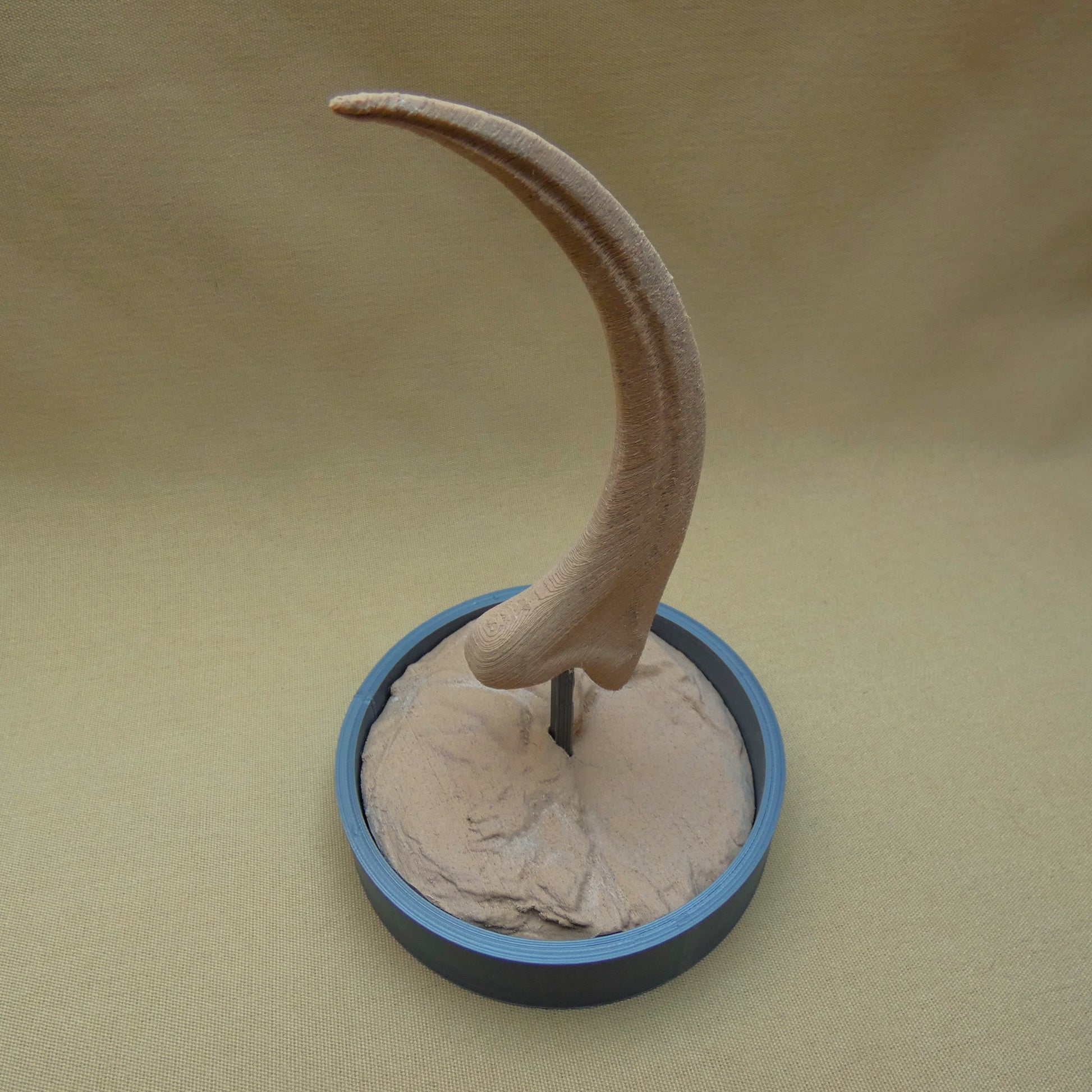 Designed to be placed on a dedicated base, this claw resembles a freshly discovered fossil, offering a striking and realistic rendering. This product is a 3D printing file in STL format (dematerialized product), intended for 3D printer owners wishing to bring this fascinating and unique replica to life. A perfect creation for collectors and model enthusiasts!