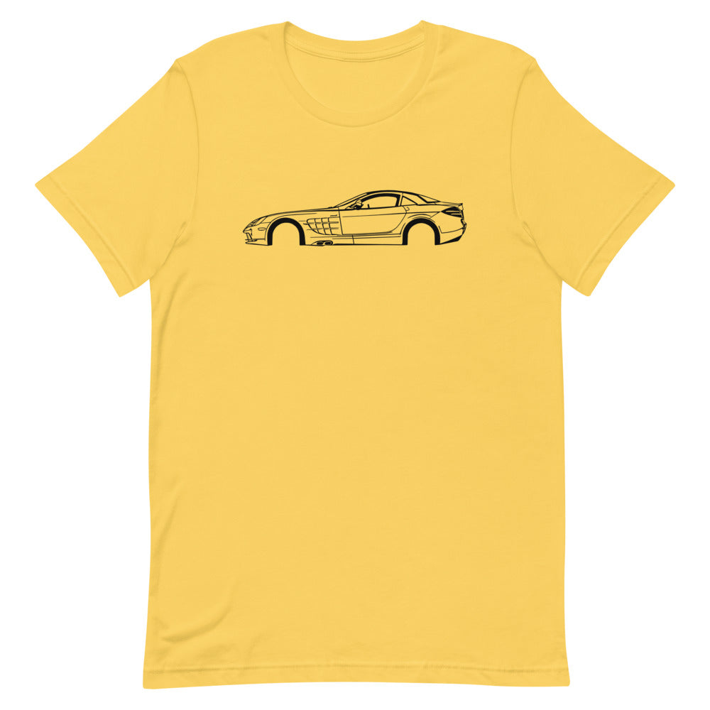 Ce t-shirt doux, léger et confortable vous fera paraître à votre meilleur dans toutes les situations tout en s'inspirant de la supercar naît du partenariat entre les constructeurs Mercedes-Benz et McLaren, la Mercedes-Benz SLR McLaren.